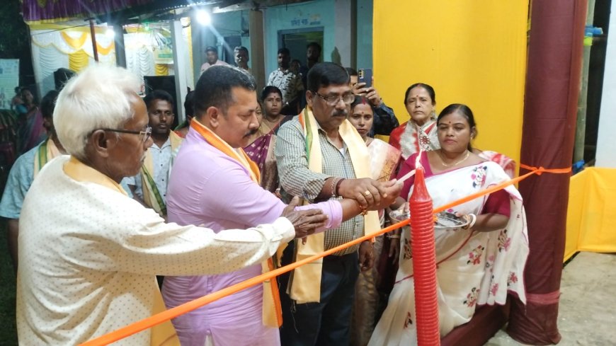 কামালঘাটের শান্তি পাড়া প্লে সেন্টারে পূজা মন্ডপের আনুষ্ঠানিক উদ্বোধন করেন সাংসদ বিপ্লব কুমার দেব। ছবি:- নিজস্ব